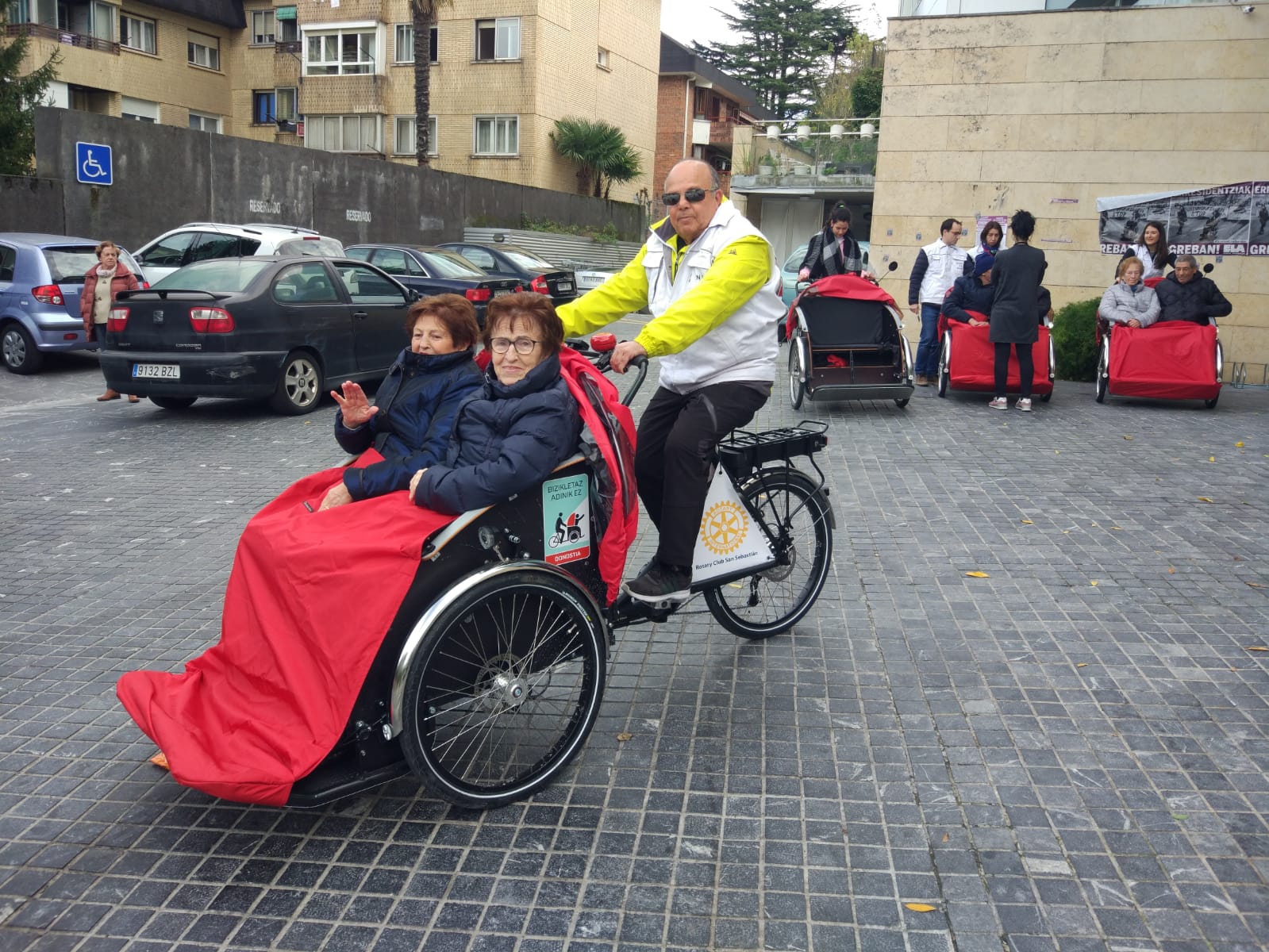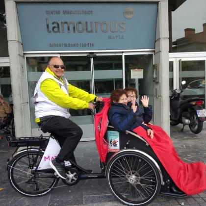 La actividad consiste en realizar paseos y salidas en triciclo donde el voluntario puede llevar a dos personas mayores por triciclo. El triciclo es una herramienta para construir mejores vínculos inter-generacionales y relaciones, creando historias paseando por Donostia, donde las personas mayores re-descubren de la ciudad acompañados de voluntarios, familiares, vecinos, amigos, colaboradores generando COMUNIDAD.