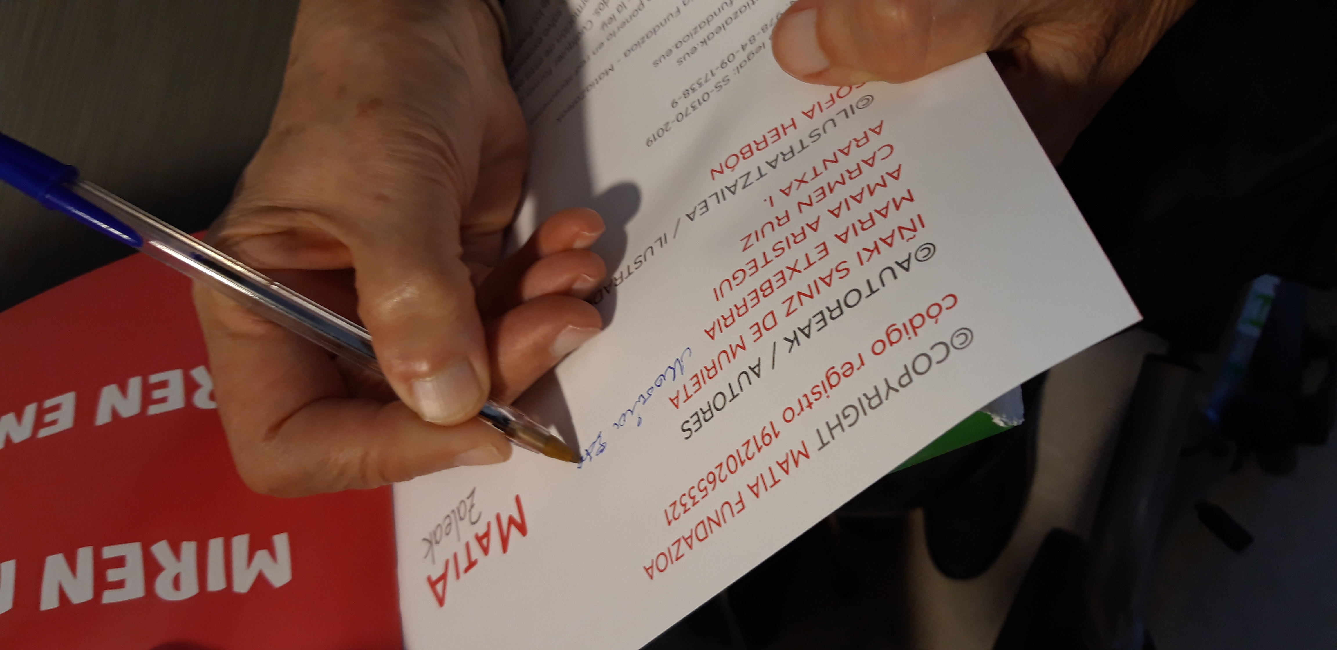 Ahora empezamos con la distribución de los cuentos en papel, con los colegios e ikastolas con los que tenemos relación con los programas intergeneracionales, y una unidad también para cada persona mayor que vive en Matia, para que lo pueda leer, regalar, contar...