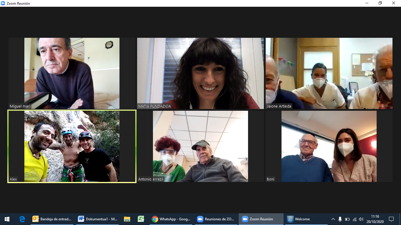 En plena pandemia y confinamiento, en Abril, tuvimos la oportunidad de respirar aire puro gracias a Alex: desde La Caixa nos dieron la oportunidad de dar inicio a unos encuentros online, en las cuales participan personas que viven en diversos centros de Matia Fundazioa, y que tienen relación con la montaña, bien por afición, bien por profesión.