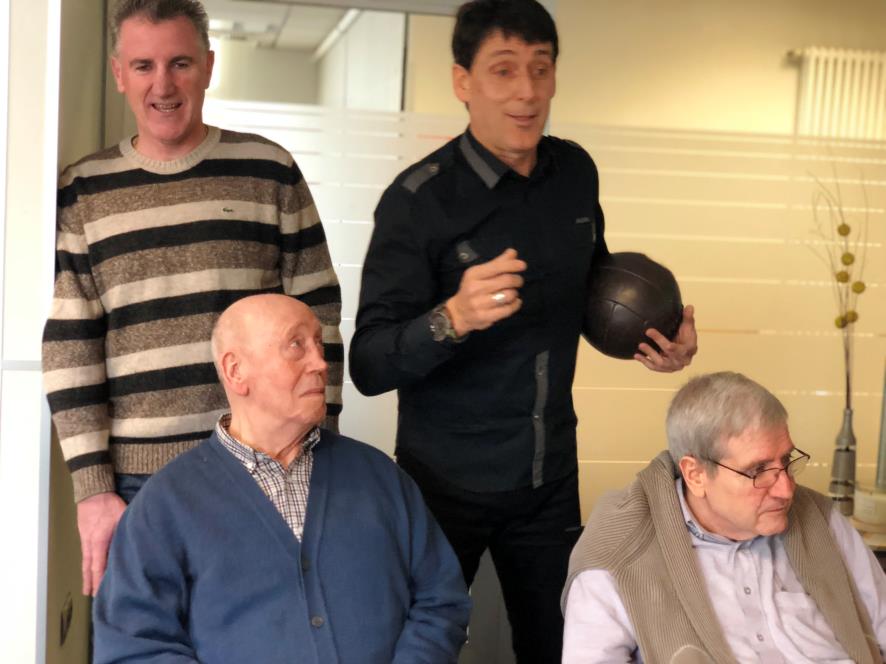 Preguntas para recordar, sonreir, competir… que hacen Andoni y Mitxel en esta primera sesión: Cuándo ganas el mundial, ¿qué te ponen en la camiseta? ¿Cuál es la selección que más estrellas tiene? ¿El primer campo que jugó la Real Sociedad? ¿Quién es este jugador? ¿Este jugador, en qué equipo estuvo? ¡Y cómo responden y se acuerdan!! Es curioso y agradable. Se genera un buen ambiente.