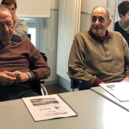 El 13 de Junio es la última sesión del programa de reminiscencia. Durante estas semanas Mitxel y Bixio, excelentes profesionales y personas, han estado acudiendo semanalmente a Otezuri, a compartir con el grupo sus recuerdos, su experiencia, a interesarse por la afición y entrega de Koldo conel fútbol en Zarautz, a preguntarle a Mª Angeles sobre su himno favorito, sobre cómo disfrutaban el fútbol en el bar que ella regentaba, a recordar a Eusebio cómo logró el trofeo de pitxitxi de temporada... y así con todas las personas que han participado, cada uno con su historia, con sus recuerdos... pero todos, con una sonrisa en la cara cuando hablaban y recordaban.