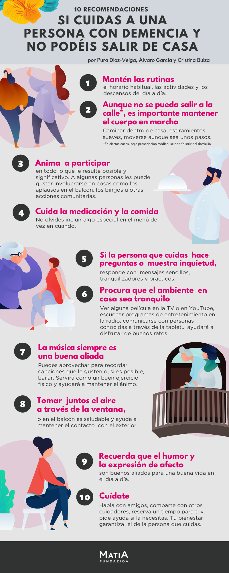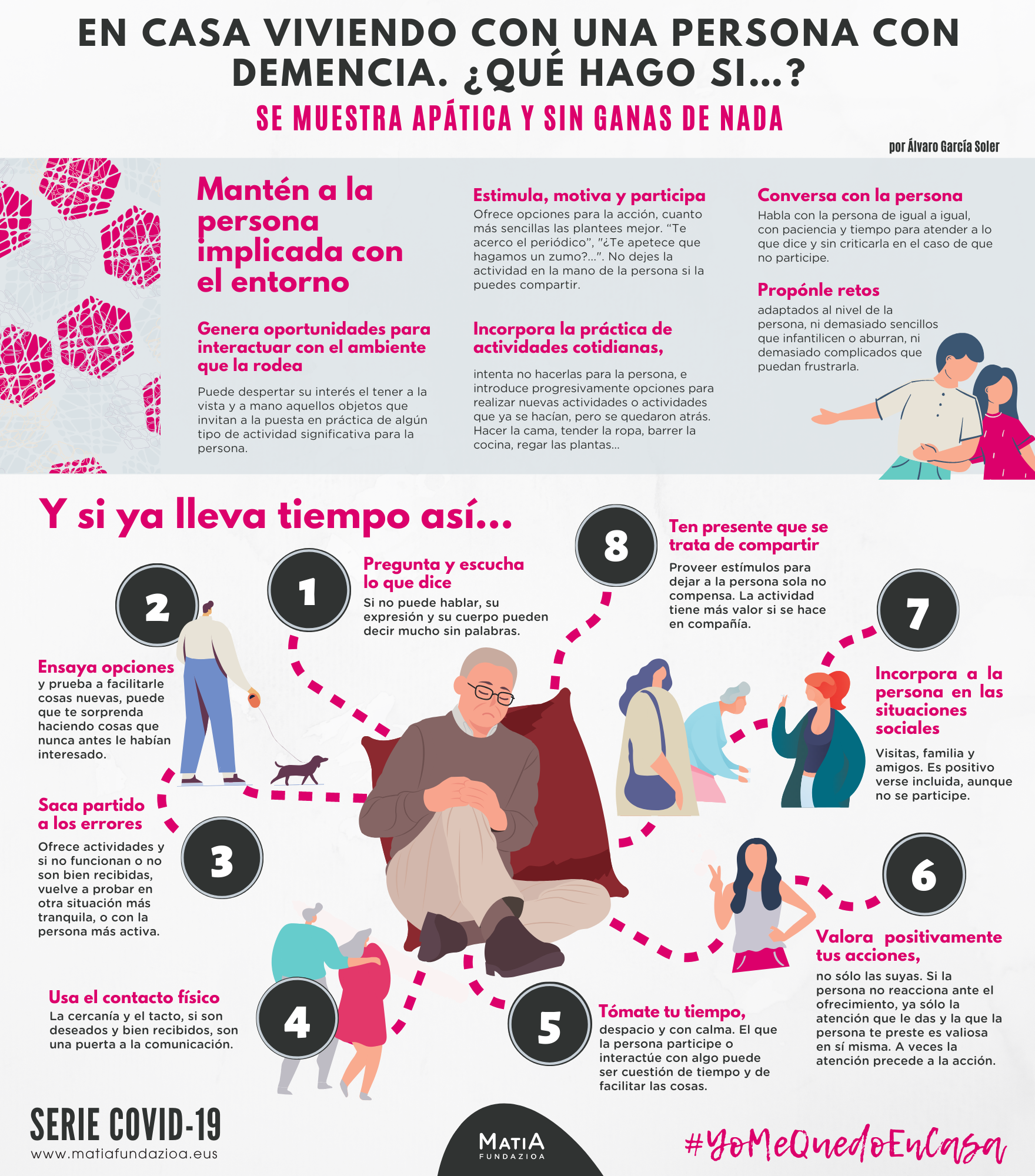 24.06.2020 - Infografia berria: etxean dementzia duen pertsona batekin bizitzen. Zer egingo dut? Apatiko eta ezertarako gogorik gabe agertzen da.